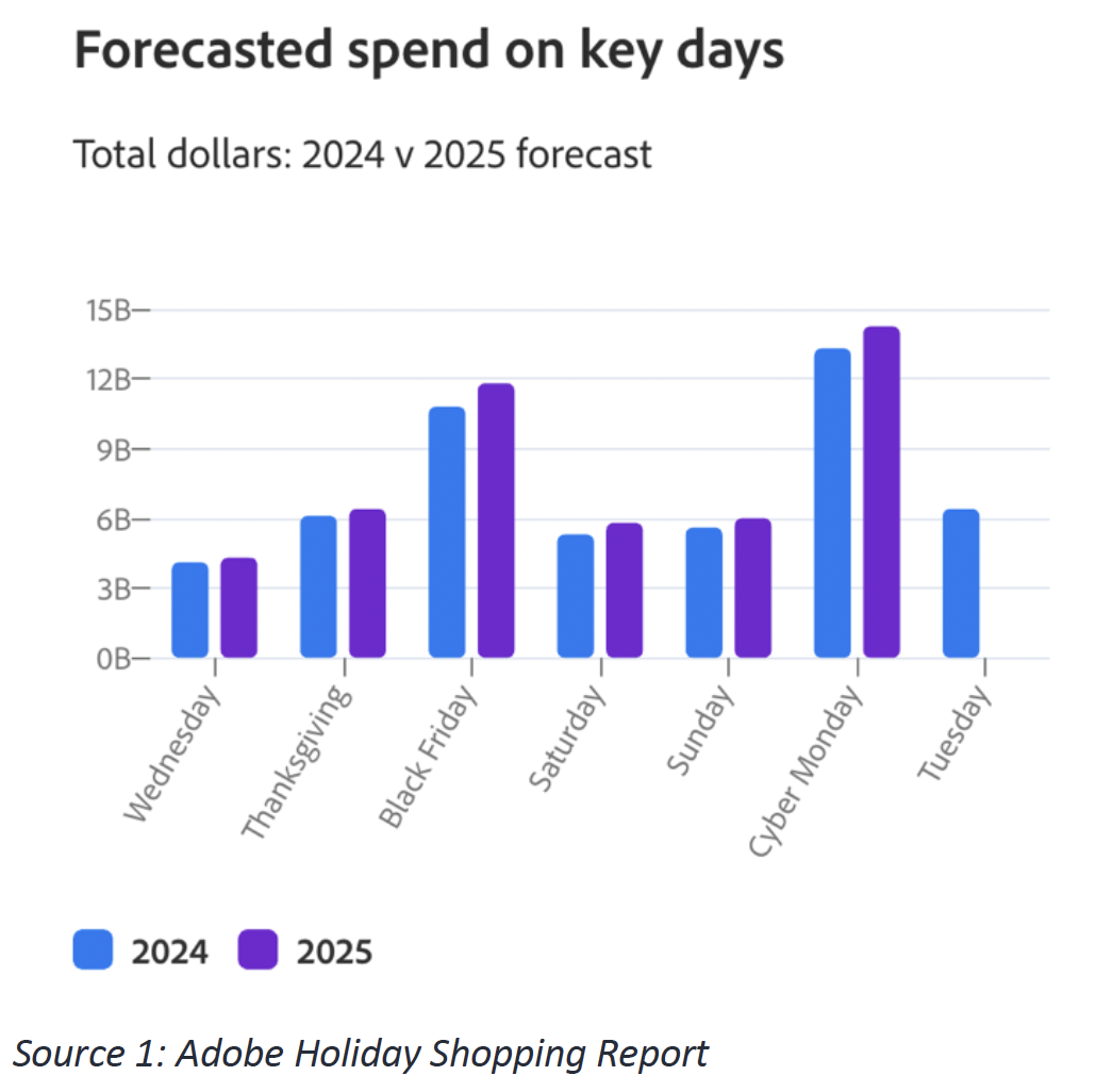 Thanksgiving remains the traditional start of the holiday shopping season, though everyone knows Black Friday promotions begin long before then. Consumers blew away expectations by increasing spending more than 7% over the same time period last year. Of course, six days do not a holiday season make, but it appears that households intend to introduce holiday cheer to a somewhat uncertain environment by whatever means they can.