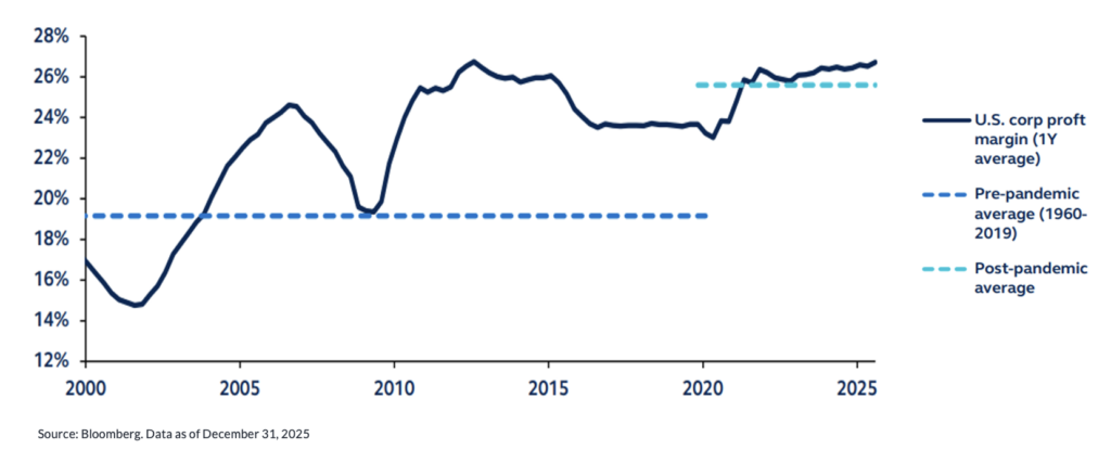 Profits as a percentage of corporate revenue, 2000–3Q 2025