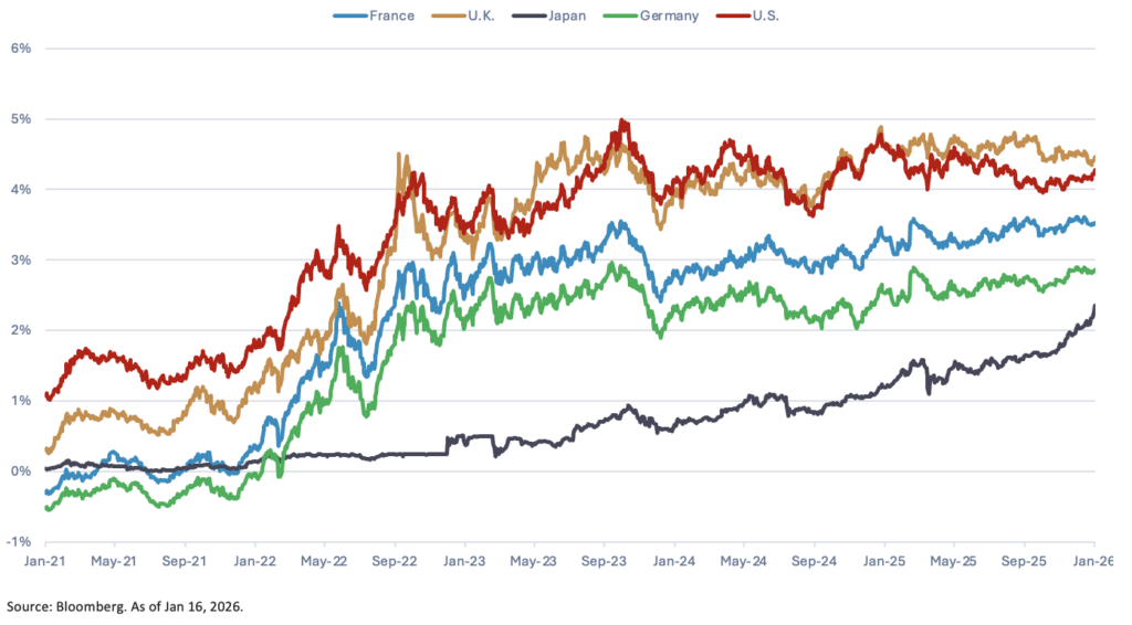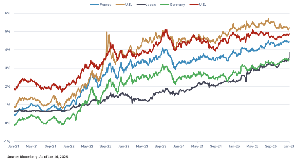 Long-end yields are more susceptible to fiscal debt sustainability concerns, inflation expectations, Fed independence , growth and geopolitical uncertainty. Rising 10-year rates also impact mortgage debt pricing.