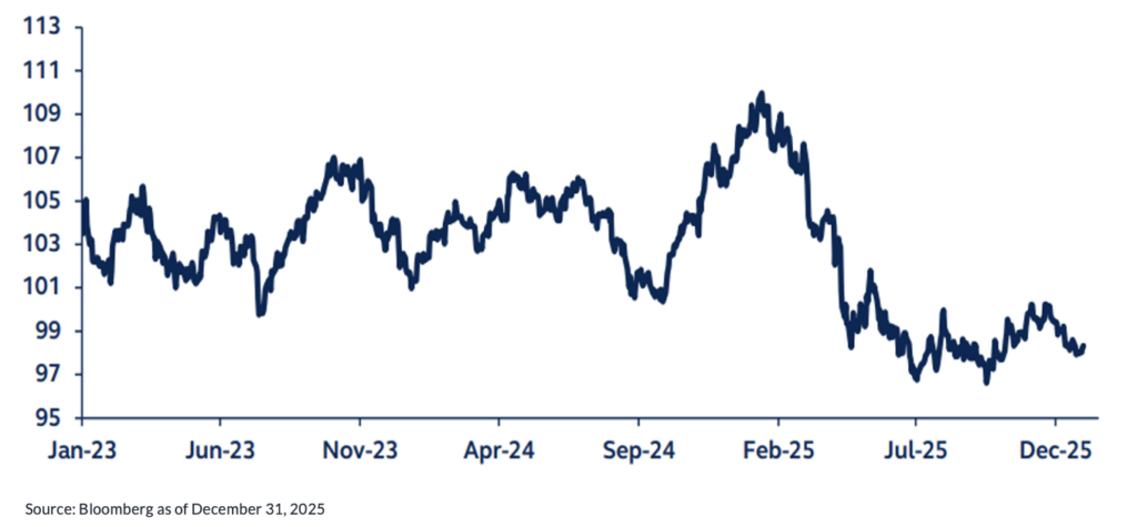 US Dollar Index: Jan 2023 – Dec 2025