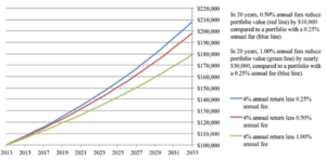 Hypothetical growth of $100,000 to show the effect of advisory fees on investment returns over time